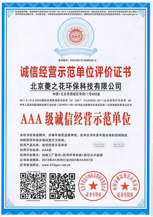 誠(chéng)信經(jīng)營(yíng)示范單位評(píng)價(jià)證書(shū)