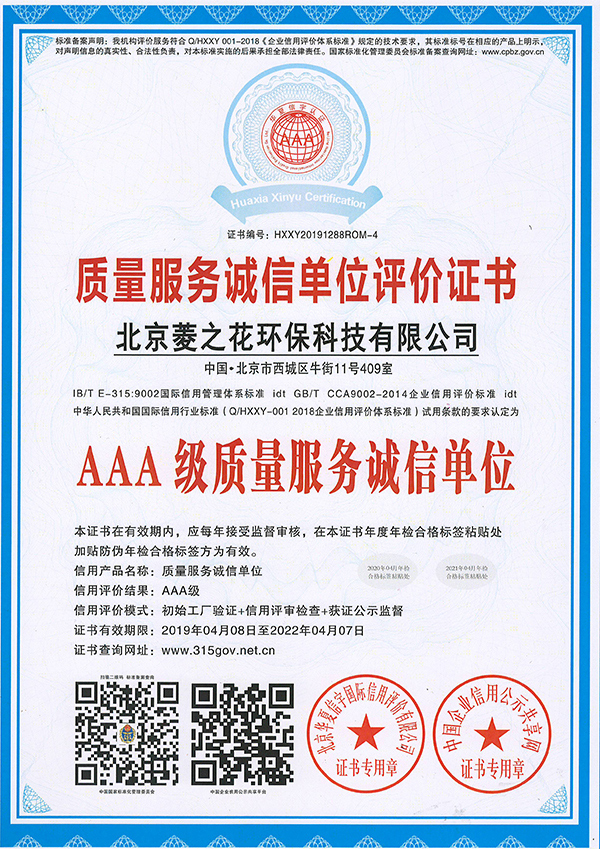質(zhì)量服務(wù)誠(chéng)信單位評(píng)價(jià)證書(shū)